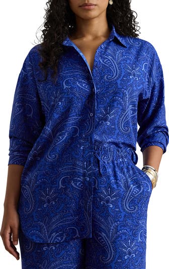 Paisley designs pattern this polished button-up shirt that's complete with slightly dropped shoulders and a curved hem.