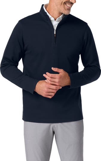 Lightweight and layerable, this moisture-wicking pullover made with breathable cotton features a short zipper for adjusting the fit and a taller collar for extended coverage in the cold.