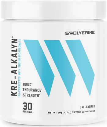 - SWOLVERINE® KRE‑ALKALYN® — More Strength.* No Loading Required.* GI‑Friendly for Many.* A pH‑buffered creatine monohydrate—featuring a sodium bicarbonate buffering system—designed to support strength, power, repeated high‑intensity efforts, and between‑session recovery. The pH‑corrected formula is engineered for solution stability and everyday GI comfort for many users, helping you keep training quality high across lifts, sprints, and circuits. ** Why Choose Swolverine® Kre‑Alkalyn® Creatine? → Supports Strength & Power Output* — Helps regenerate ATP for max‑effort lifts, sprints, and short, high‑intensity bursts.*→ No Loading Phase Required* — Daily use supports muscle creatine saturation over time—without a front‑end loading protocol.*→ pH Buffering with Sodium Bicarbonate* — The sodium bicarbonate system helps stabilize pH, supporting creatine’s use in solution and promoting GI comfort for many users.*→ High‑Intensity Capacity & Recovery Support* — Creatine + bicarbonate buffering supports repeated efforts and between‑set readiness during demanding sessions.*→ Transparent, pH‑Buffered System* — Kre‑Alkalyn® creatine monohydrate with sodium bicarbonate; no unnecessary fillers or artificial additives.* Why Sodium Bicarbonate Matters → Extracellular Buffering Support* — Sodium bicarbonate helps buffer exercise‑induced acids in the blood, supporting normal acid‑base balance and helping delay fatigue perception during high‑intensity work.*→ Synergy with Creatine* — Creatine supports rapid ATP regeneration; bicarbonate supports pH balance outside the muscle—together they help maintain output across repeated, short‑duration efforts.*→ GI & Palatability Considerations* — As part of a buffered system, sodium bicarbonate helps create a pH‑corrected environment that many users find gentler on the stomach compared to some unbuffered approaches.* Who It’s For → Strength & Power Athletes: Support PR attempts, peak power, and quality training volume—without stimulants.*→ Cross‑Training & HIIT: Support consistent output across rounds and help maintain intensity set after set.*→ Field/Court & Endurance with Sprints: Back repeated surges, accelerations, and hills within longer efforts.*→ Anyone Seeking Creatine with Simple Dosing: A straightforward, once‑daily option—no loading required.* How It Works Creatine increases intramuscular phosphocreatine, helping regenerate ATP—the fastest energy system for brief, intense efforts.* The formula’s sodium bicarbonate contributes pH buffering, supporting normal acid‑base balance during high‑intensity training and creating a pH‑corrected environment for the creatine in solution.* Consistent daily use helps build and maintain muscle creatine stores, supporting strength, power, and overall training quality over time.* Ingredients & Amounts (Per Serving) → Kre‑Alkalyn® (pH‑buffered Creatine Monohydrate with Sodium Bicarbonate) — 3 g→ Servings per Container: 30→ Label Transparency* — pH‑buffered creatine system with sodium b