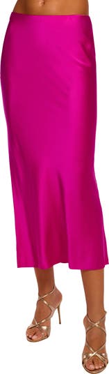 Smooth silk with a hint of stretch amplifies the luxe style of this outfit-making midi skirt.