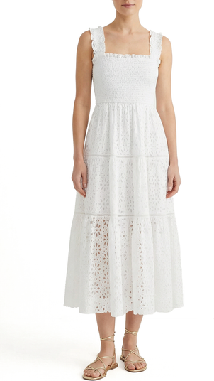 The Kristen Dress is your effortless answer to any occasion, whether it is brunch, poolside lounging, or an al fresco dinner party. Cut from airy cotton slub fabric with a flowing, tiered silhouette, it is the kind of dress you just slip on and go, no fuss, always polished. With a flattering smocked bodice, adjustable straps, and a playful tiered skirt, this dress combines comfort and style in one easy piece. Pair it with sandals or sneakers for a look that is laid-back yet ready for anything the day or night brings.
