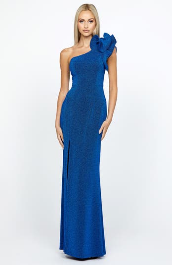 Ruffle frills and thigh-high splits: what's not to love about the Kristi? This dress is perfect for weddings and bridesmaids, pair with nude heels and a sleek up-do to show off that shoulder detailing.