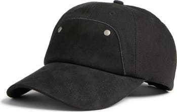 Matte rivets detail the crown of this mixed-media baseball hat made from structured cotton canvas with a faux-suede front panel and brim.
