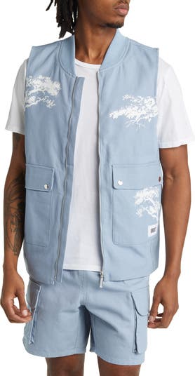 Inspired by the Eden Reforestation Projects, this sky-blue cotton-canvas vest is printed with ghostly tree graphics.