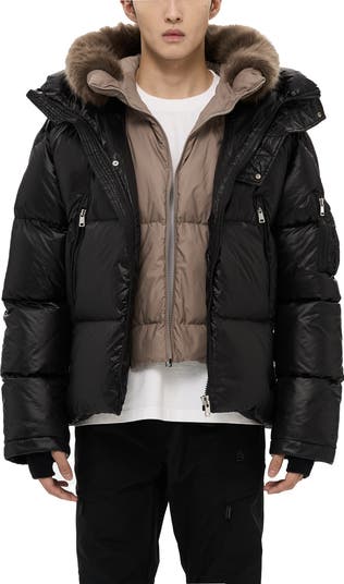 - The signature Kudu puffer evolves into a multi-functional and luxurious new 2-in-1 generation without losing its sporty DNA. Featuring a two-in-one front pocket that extends from the chest to the bottom, it includes two compartments: chest pockets and hand pockets, each individually secured by a smart two-way zipper slider. The detachable inner placket and hood offer flexibility and diverse styling options, while the luxurious inner fur brim elevates the contemporary sporty puffer into a glamorous statement piece. It also provides extra warmth around the neck for added comfort.