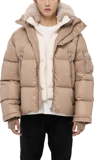 - The signature Kudu puffer evolves into a multi-functional and luxurious new 2-in-1 generation without losing its sporty DNA. Featuring a two-in-one front pocket that extends from the chest to the bottom, it includes two compartments: chest pockets and hand pockets, each individually secured by a smart two-way zipper slider. The detachable inner placket and hood offer flexibility and diverse styling options, while the luxurious inner fur brim elevates the contemporary sporty puffer into a glamorous statement piece. It also provides extra warmth around the neck for added comfort.