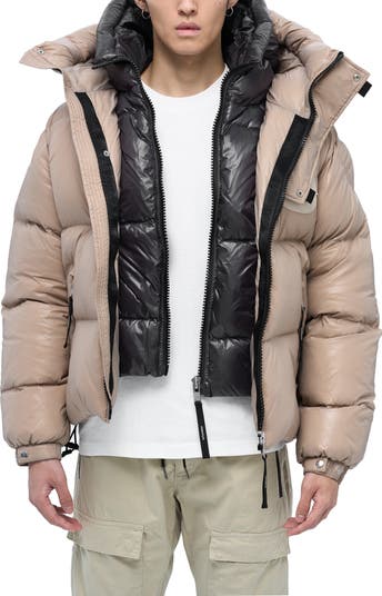 This signature piece is designed to endure extreme winter conditions while maintaining lightweight agility and high functionality. Featuring a double hood for enhanced wind blocking and an inner storm placket, this jacket ensures exceptional warmth around the neck area. With double the usual down fill, heavy-duty zippers, and premium hardware, it combines durability with luxury. The glossy fabric, contrasting inner details, and sophisticated trims make this puffer jacket a timeless and sporty winter essential.th, protection, and style.