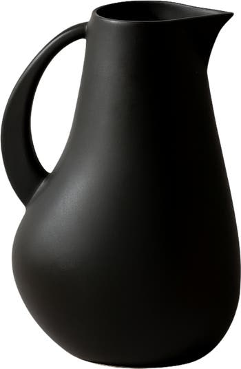With gorgeous, bold stoneware as a functional centrepiece, every meal becomes a multi-sensory experience. Whether used for water or wine or to display flowers in the home, our contemporary designs combine the purity of form with individual artistry to create a visual feast for the eyes. Dimensions: • Diameter: 6 inches (15 cm) • Height: 9.7 inches (24.5 cm) • Weight: 2.42 lbs (1.1 kg) • Capacity: 64 oz (190 cl) Specifications: Food safe Microwave and dishwasher safe Oven use: because stoneware is a fragile material, we advise extra caution as we offer no guarantee. Check out our Use & Care Handmade Material: Enameled stoneware Completely free of toxic heavy metals (like cadmium and lead) and carcinogens found in other, less robust, ceramic forms. Made in Tunisia Disclaimer: Our products are handmade by ceramists, one at the time. As such, they're all unique in their own ways and you may spot a small finger print on the base, or the imprint of the grid onto which they were placed when fired. Please note that these are the marks of true craftsmanship. Our stoneware mugs may get hotter than usual. Packaging marks may be spotted and your flatware can leave superficial marks. Yet, they can both be easily taken off.