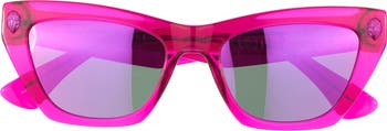 A sleek cat-eye silhouette and signature eagle-head hardware distinguish stylish sunnies fitted with CR-39 lenses for optimal clarity.