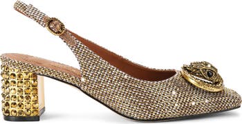 Crystal embellishments accent the signature eagle head and block heel on a scene-stealing leather pump fashioned with an adjustable slingback strap for a secure fit.