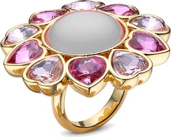 Heart-shaped crystals add irresistible charm to this sparkling cocktail ring that's ready to make a statement.