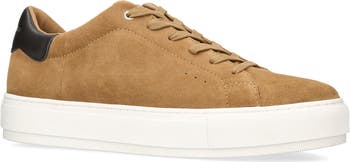 Soft suede wraps the minimalist silhouette of this dapper sneaker finished with a contrast heel accent and classic rubber cupsole.