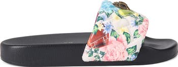 Lounge indoors or poolside with this glittery slide sandal accented with a signature eagle head and fitted with a contoured footbed.