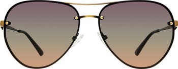 Subtly offset lenses showcase the floating, rimless silhouette of aviator sunglasses that put a modern twist on a tried-and-true style. Understated eagle head accents at the temples complete the look with a hint of signature flair.