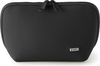 A roomy interior plus pockets for smaller items keep a lot of makeup organized and easy to access in this bag that opens wide so you can see it all at once.