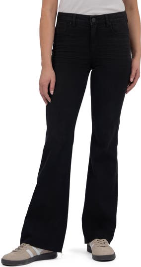 Fitted through the waist and thighs and subtly flared below the knees, these stretchy jeans have a polished look in a saturated black wash that's easy to style up or down.