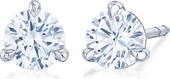 Add fiery sparkle to your evening look with brilliant, round-cut diamonds prong set on timeless stud earrings crafted from polished platinum.