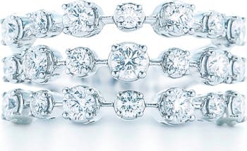 As brilliant as stars plucked from the night sky, an opulent ring features a triple row of white diamonds set on ethereal strands of 18-karat white gold.