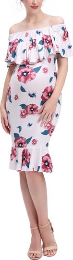 Fun and flirty, this mermaid midi dress features a trendy convertible off the shoulder look. Cleverly hidden nursing panels allow this dress to be worn well after pregnancy.