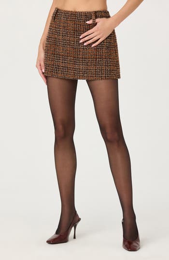 A classic check pattern enhances the sophisticated dimension of a tweed miniskirt shaped from a wool-kissed blend perfect for your desk-to-dinner looks.