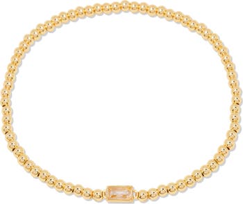 Personalize your everyday ensemble with this beaded bracelet that's centered by a cubic zirconia charm colored to match your birthstone.