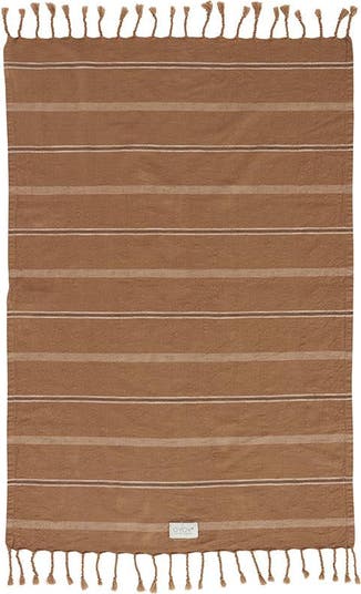 With thoughts back to childhood, this bath towel has been created with decorative fringes. With the graphic design and the fringes that makes it a beautiful and practical accessory. The bath towel is made of soft organic cotton. Bring your bath towel to the beach and use it at the same time as a blanket. We recommend to put the bath towels in cold water over night before the first wash. This will improve the ability to absorb the water.