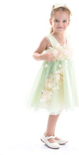 - 65% Polyester, 35% Viscose?Sleeveless bodice with floral appliqués?Tulle skirt with soft volume?Embellishments extend across bodice and hem?Pastel tones for delicate charm?Festive silhouette for special occasions?Imported