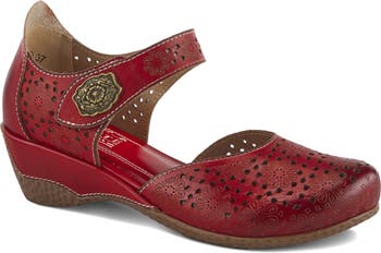 Embossed flowers and dainty cutouts create a fun textural play on an arch-supporting clog topped with a wide ankle strap.