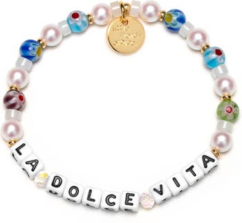 Gift good vibes to yourself or someone special with this whimsical handmade bracelet that makes a statement in faceted crystals, lustrous faux pearls and beads. Each bracelet comes with a tag inscribed with a registration code that can be used to register your item on the Little Words Project app or website, inducting you into the Nice Nation, a community dedicated to building each other up.