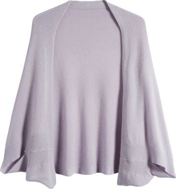Cardigan style kicks back in this sweater-inspired, unstructured cocoon wrap knit for lightweight warmth from wool and cashmere yarns.
