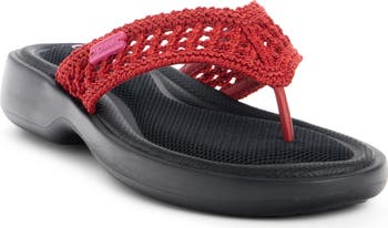 A crocheted thong strap lends the label's signature boho ease to this sandal that puts a focus on comfort with a padded footbed and chunky rubber sole.