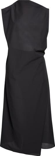 The asymmetric slant of the spring '26 collection informs the cut of this midi made from semisheer poplin enhanced with nylon to sustain the architectural elegance of the drape.