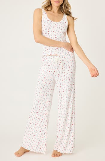 Drift off to sweet dreams in this ditsy floral pajama set cut from soft ribbed jersey and framed by dainty lettuce-edge trim.