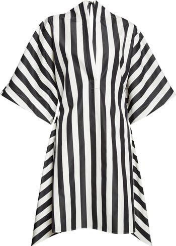 Awning-inspired stripes animate the delightfully asymmetric design of this open-back tunic sewn from fluid silk-kissed fabric.