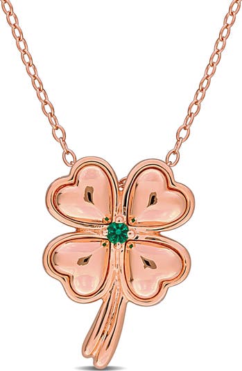 Lab-Created Emerald Clover Leaf Necklace Rose Plated