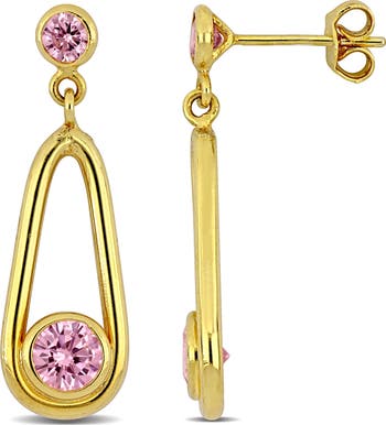 Lab-Created Pink Sapphire Drop Earrings Yellow Silver