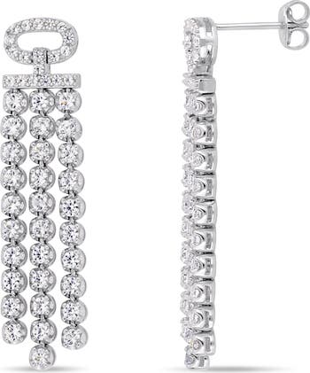 Exude refined elegance with these created white sapphire drop earrings. The sparkling stones are beautifully set in sterling silver, creating a graceful design that catches the light from every angle. The drop style adds movement and sophistication, making them a standout accessory. Perfect for special occasions or elevating any outfit, these earrings blend timeless beauty with sparkling charm.
