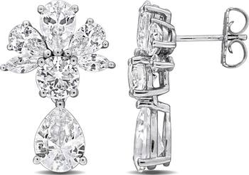 Lab-Created White Sapphire Floral Drop Earrings
