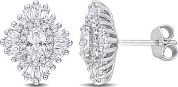 Shine with celestial elegance in these created white sapphire starburst earrings. The sparkling stones are set in sterling silver, forming a radiant starburst design that catches the light from every angle. Their intricate arrangement adds a touch of sophistication and modern flair. Perfect for special occasions or adding a dazzling accent to any outfit, these earrings blend timeless beauty with sparkling charm.