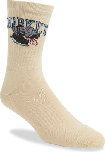 A friendly canine brings tough style to these cotton-rich socks knit with stay-put, sturdy ribbed cuffs and a reinforced footbed that ensures lasting comfort.