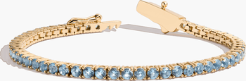 Add color to your stack in a classic (but modern) way. Your favorite gemstone tennis bracelet, now available in Aquamarine (!) Using AAA quality lab grown Aquamarines only, this beauty will be the envy of every event.