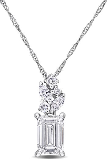 This exquisite Lab-Grown Diamond Pendant Necklace in 14k White Gold is a captivating blend of modern elegance and bold style. The pendant features a stunning arrangement of multi-shaped lab-grown diamonds each meticulously set to maximize their brilliance and sparkle. The 14k white gold setting adds a dramatic contrast that highlights the diamonds' luminosity. Suspended from a 17-inch chain, this pendant offers a sophisticated and contemporary look, Its unique design and luxurious finish make it a standout piece in any jewelry collection.