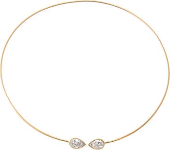 Lab Grown Diamond Double Bezel Pear Collar Choker Necklace 14K