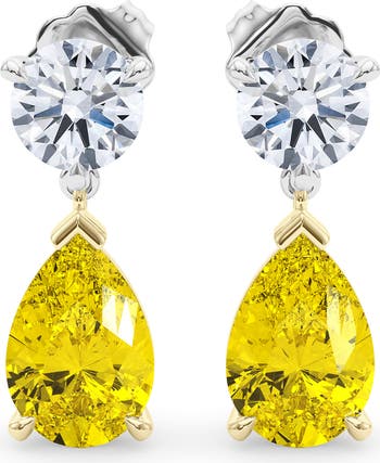 Round and pear-cut diamonds dazzle on these endlessly elegant drop earrings fashioned from 18-karat white gold.
