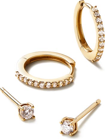 You can never have too much sparkle. These lab grown diamond earrings are the perfect combination of beautiful and bold. Crafted in solid gold and made to last a lifetime, this pre-styled pair features sparkly huggie hoops and eye-catching diamond studs.