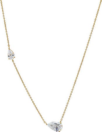 Lab Grown Diamond Embedded Double Pear Chain Necklace 14K