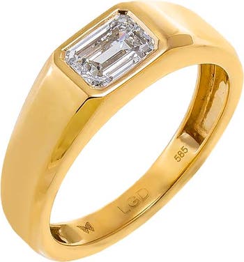Lab Grown Diamond Emerald Bezel Dome Ring 14K