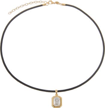 Lab Grown Diamond Emerald Bezel Leather Chain Necklace 14K