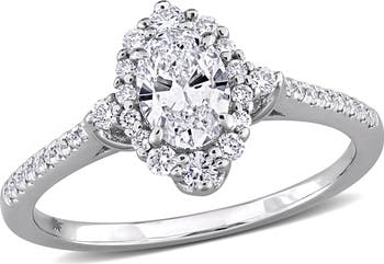 Elevate your love story with this exquisite Oval and Round-Cut Lab-Grown Diamond Halo Engagement Ring, crafted in lustrous 14k White Gold. The centerpiece of this dazzling ring is a brilliant oval-cut lab-grown diamond, framed by a halo of sparkling round-cut lab-grown diamonds. This halo setting enhances the brilliance and fire of the center stone, creating a mesmerizing display of light and radiance.