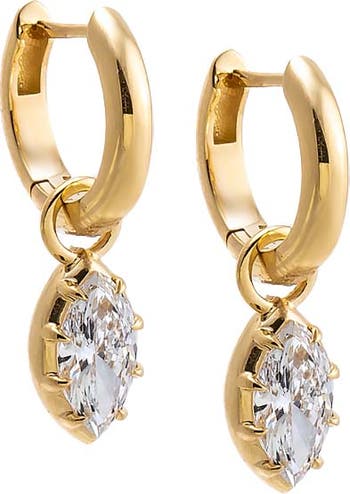 Lab Grown Diamond Marquise Dangle Huggie Earring 14K